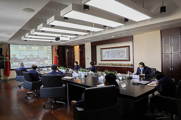 2月13日下午,省政府国资委通过陇政钉平台召开视频会议,集团返岗班子成员在集团分会场参会。视频会议结束后,立即召开会议,研究集团贯彻落实工作。
