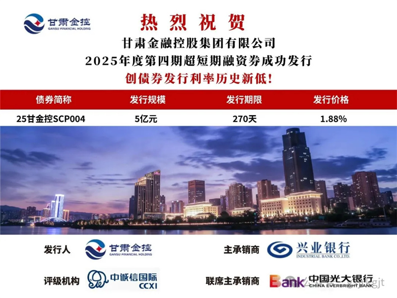 2025年6月26日,火博·官方版网站登录入口-火博(中国) 成功发行2025年度第四期超短期融资券“25甘金控SCP004”,规模5亿元,期限270日,票面利率1.88%,创集团债券发行利率历史新低,有助于集团降低融资成本。
